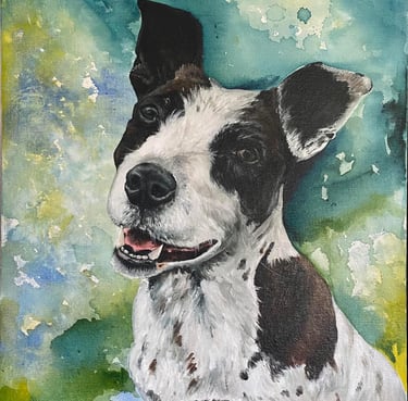 I am a Finnish artist working at Studio Sage, creating emotionally resonant portraits of animals in acrylic, oil, and drawing media. I have come to recognise my own vulnerability, gentleness and emotional presence and repeatedly express it through the symbolic gaze of companion animals, exploring themes of exposure of emotions, humbleness and dignity.